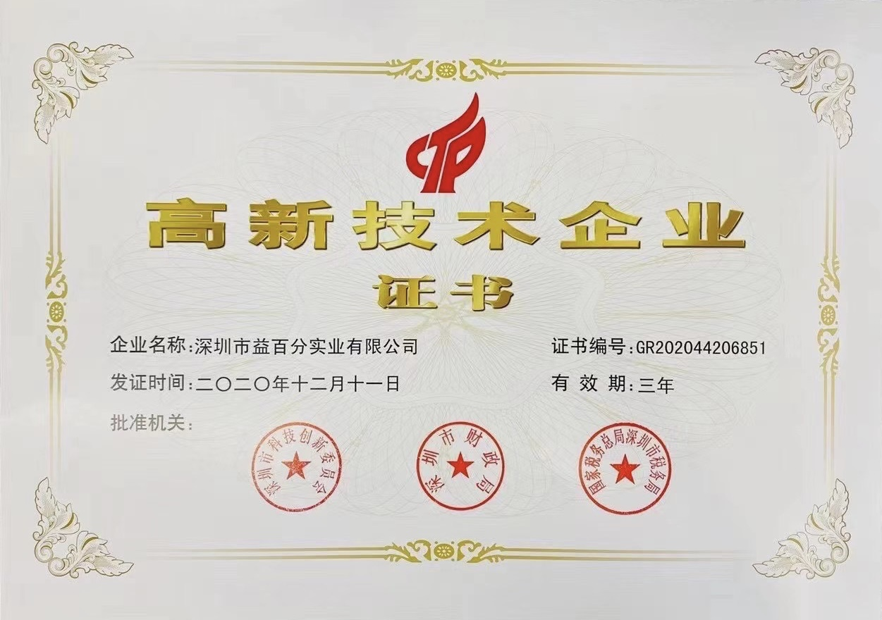 近日,深圳市科技創(chuàng)新委員會(huì)、深圳市財(cái)政局、國(guó)家稅務(wù)總局深圳市稅務(wù)局聯(lián)合公布了最新一批的“高新技術(shù)企業(yè)”名單。深圳市益百分實(shí)業(yè)有限公司憑借雄厚的研發(fā)實(shí)力和領(lǐng)先一步的自主創(chuàng)新能力成功入選,正式邁入國(guó)家高新技術(shù)企業(yè)的行列,駛進(jìn)發(fā)展的快車道。