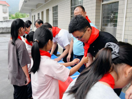 愛心企業(yè)益百分為孩子們送上助學(xué)金、書包、文具等,還為師生都準(zhǔn)備了可口的小蛋糕,并與孩子們交心談心,詳細(xì)詢問了他們的日常學(xué)習(xí)及校園生活等情況,鼓勵(lì)他們要努力學(xué)習(xí)。孩子們都非常開心,并為愛心人士佩戴紅領(lǐng)巾,用質(zhì)樸的行動(dòng)表達(dá)他們最真摯的感謝。