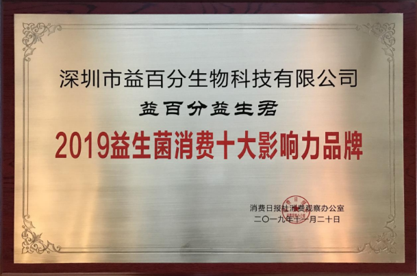 2019年益百分益生君榮獲“益生菌消費十大影響力品牌"